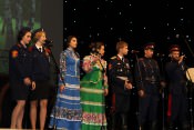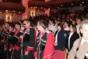 После прохождения казачьего парадного расчета торжество переместилось на сцену театра «Русская песня», где состоялось театрализованное представление и концерт творческих коллективов университета.