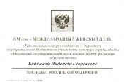 Президент Российской Федерации Владимир Путин и полномочный представитель Президента в Центральном федеральном округе Александр Беглов поздравил с 8 мартом народную артистку России Надежду Бабкину.