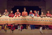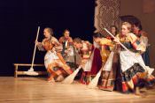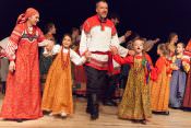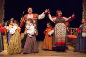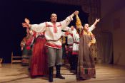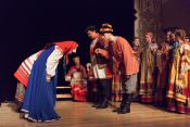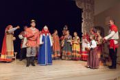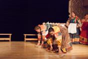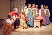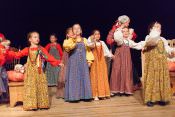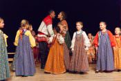 В своей новой постановке в театре «Русская песня» Татьяна Пыхонина вывела на сцену несколько поколений артистов – легендарный «Театр народной музыки» под руководством Тамары Смысловой и ребят из разных возрастных групп Детско-юношеской фольклорной студии «Наследие». Получилась, действительно, игра, в которой дети копируют поведение родителей – повторяют за взрослыми все этапы свадебного обряда, собирая наряд невесты из подручных материалов, пляшут и поют, укачивают под колыбельные своих кукол.