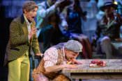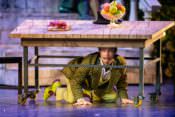 Настоящим открытием стал актерский дебют на большой сцене Дмитрия Хрусталева. Его Голохвостый энергичный, смешной и очень органичный. Пригодились и танцевальные навыки телеведущего – Свирид Петрович может похвастаться живой, почти чаплиновской пластикой.