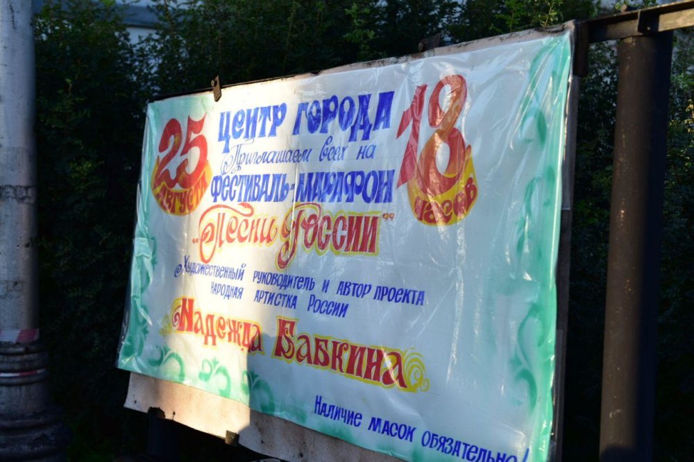 Вечер вторника участники фестиваля-марафона «Песни России» во главе с Надеждой Бабкиной встретили в Солигаче – небольшом городке Костромской области, который чаще всего называют северным Суздалем. На Красной площади с большим успехом прошёл трёхчасовой концерт. На протяжении всего концерта на сцену выходили и радовали зрителей фольклорные исполнители и коллективы разных регионов России, в том числе лучшие местные народные ансамбли – «Веретенце» и «Забава», а также солисты хореографического ансамбля «Рондо». Выступление растянулось затемно, никто не хотел расходиться.